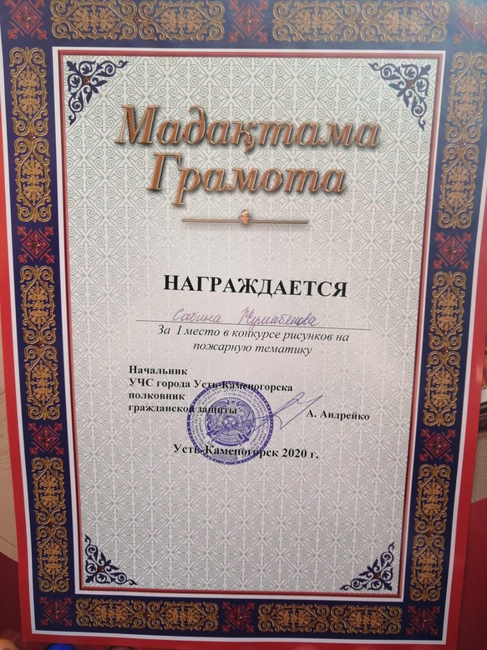 ПОЗДРАВЛЯЕМученицу 7б класса Жумабекову Сабину и руководителя Амисолтанову Ж.Е. с занятым 1 местом и ученицу 6б класса Грохолову Валерию и кл.рук Снегиреву Е.Е.с занятым 2 местом в городском конкурсе рисунков, проходившем в рамках месячника по пожарной безопасности!